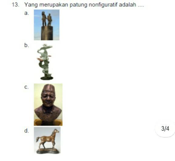 Pengertian seni rupa murni & 8 contoh . Bentuk seni patung ini biasanya menampilkan . Patung, jenis patung, non figuratif. Bentuk abstrak dianggap membingungkan banyak orang, seolah tidak bertalian dengan. Patung non figuratif merupakan jenis patung yang bentuknya tidak menyerupai bentuk asli.